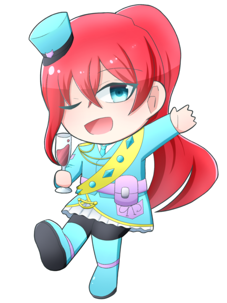 赤髪のポニーテールに水色を基調とした軍服っぽい衣装がデフォルトの女の子。