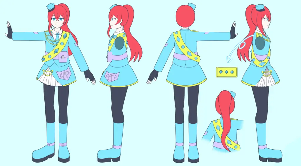 原作の曲やキャラクターの服を参考にしつつ自分なりのデザインに落とし込んで衣装デザインしました。